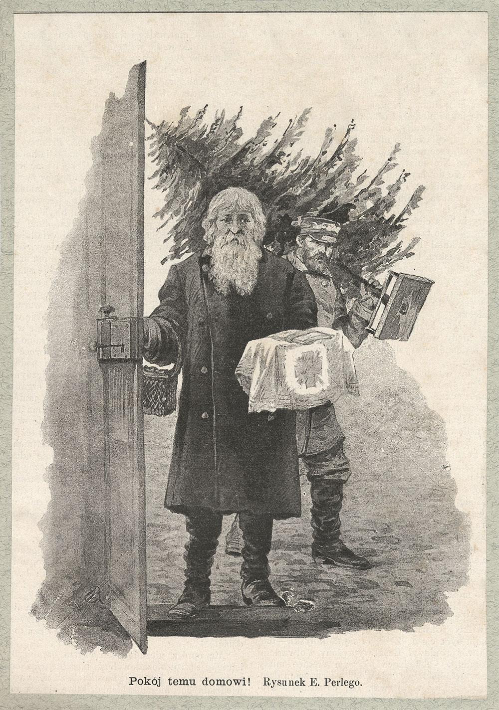 Edmund Perle (1854 - 1935), „Pokój temu domowi”, 4 ćwierć XIX w., ksylograf/papier, Muzeum Okręgowe w Rzeszowie.